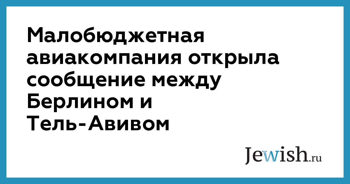 Малобюджетная авиакомпания открыла сообщение между Берлином и Тель-Авивом