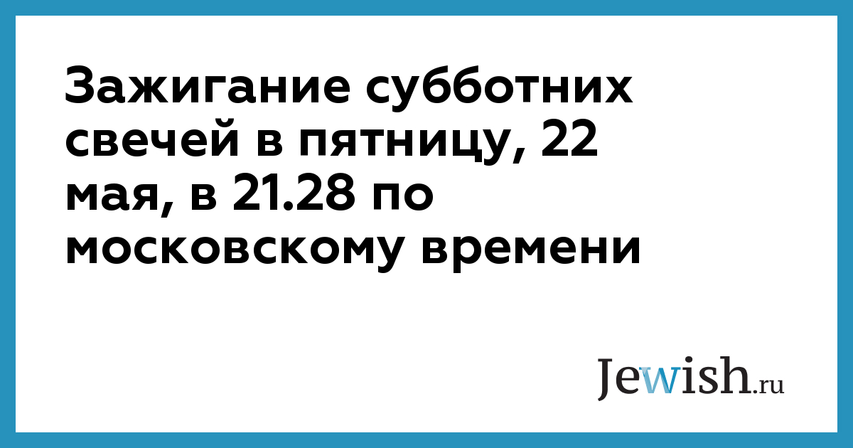 Зажигание субботних свечей в пятницу, 22 мая, в 21.28 по московскому времени
