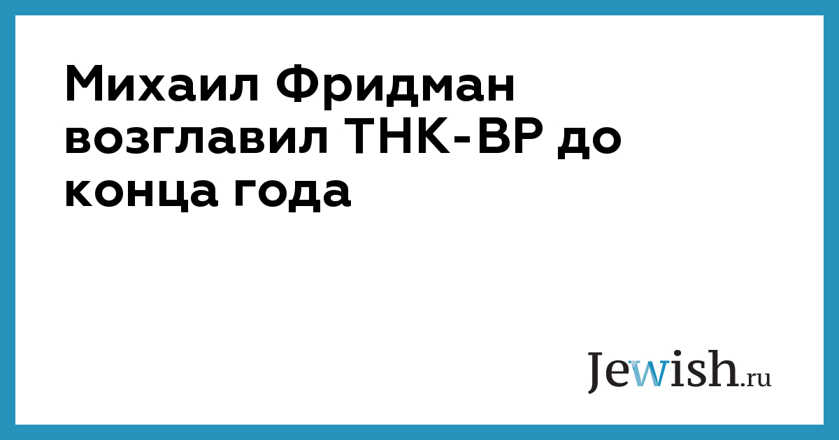 Российский миллиардер Михаил Фридман занял пост главного управляющего директора ТНК-BP, третьей по величине нефтяной компании России. Такое решение принял совет директоров головной компании ТНК-ВР, которую контролируют британская BP и консорциум российских акционеров ААR — "Альфа-групп" Михаила Фридмана, Access Industries Леонарда Блаватника и "Ренова" Виктора Вексельберга.
