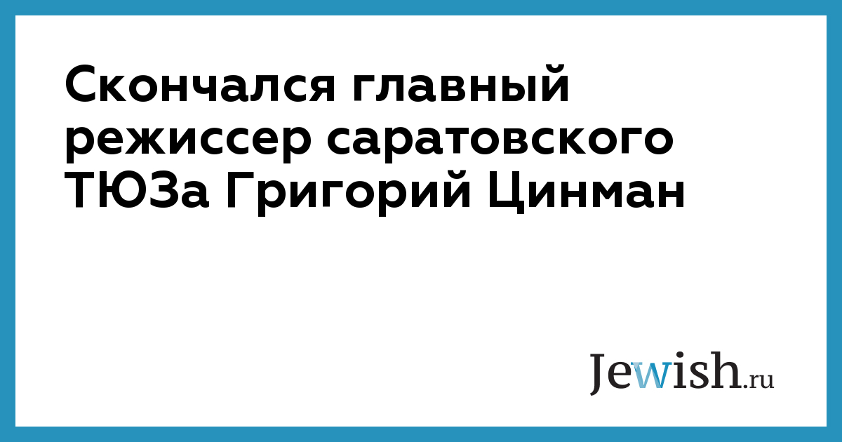 Скончался главный режиссер саратовского ТЮЗа Григорий Цинман