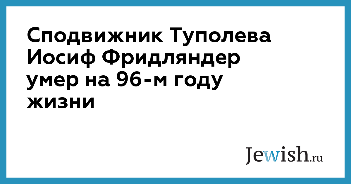 Один из ведущих российских инженеров-авиастроителей Иосиф Фридляндер умер в Москве на 96-м году жизни.