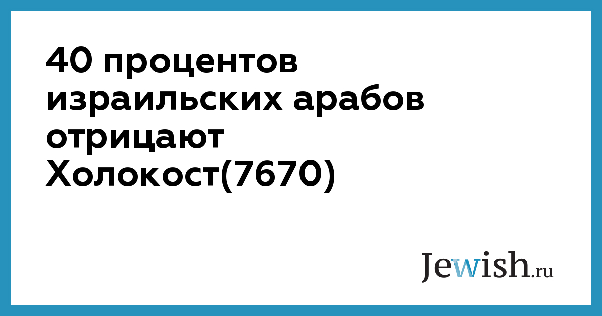Около 40% израильских арабов убеждены, что Холокоста никогда не было, показало новое исследование, сообщает JTA. Причем, в 2006 году такого мнения придерживалсиь 28% опрошенных, говорится в сообщении о проведенном исследовании арабо-израильских отношений в Хайфском университете.