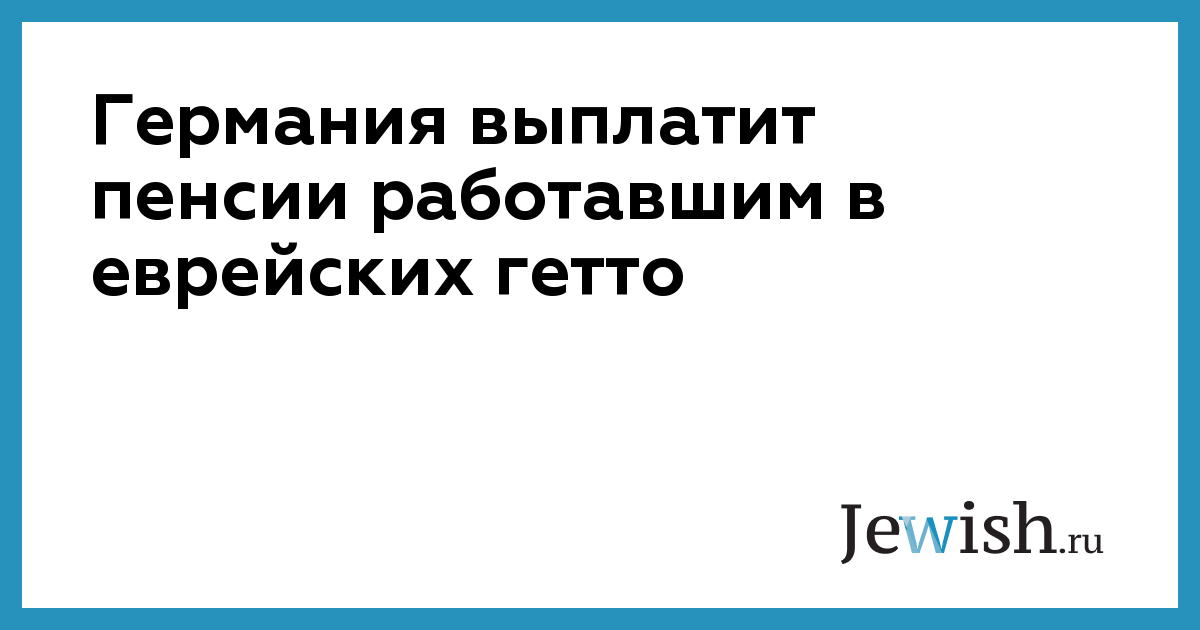 Германский федеральный суд во вторник вынес решение, согласно которому двое евреев, которых нацисты принуждали к рабскому труду на территории гетто, имеют право на получение пенсий. Тем самым суд создал прецедент для начисления пенсионных выплат тысячам других еврейских рабочих, сообщает Associated Press.