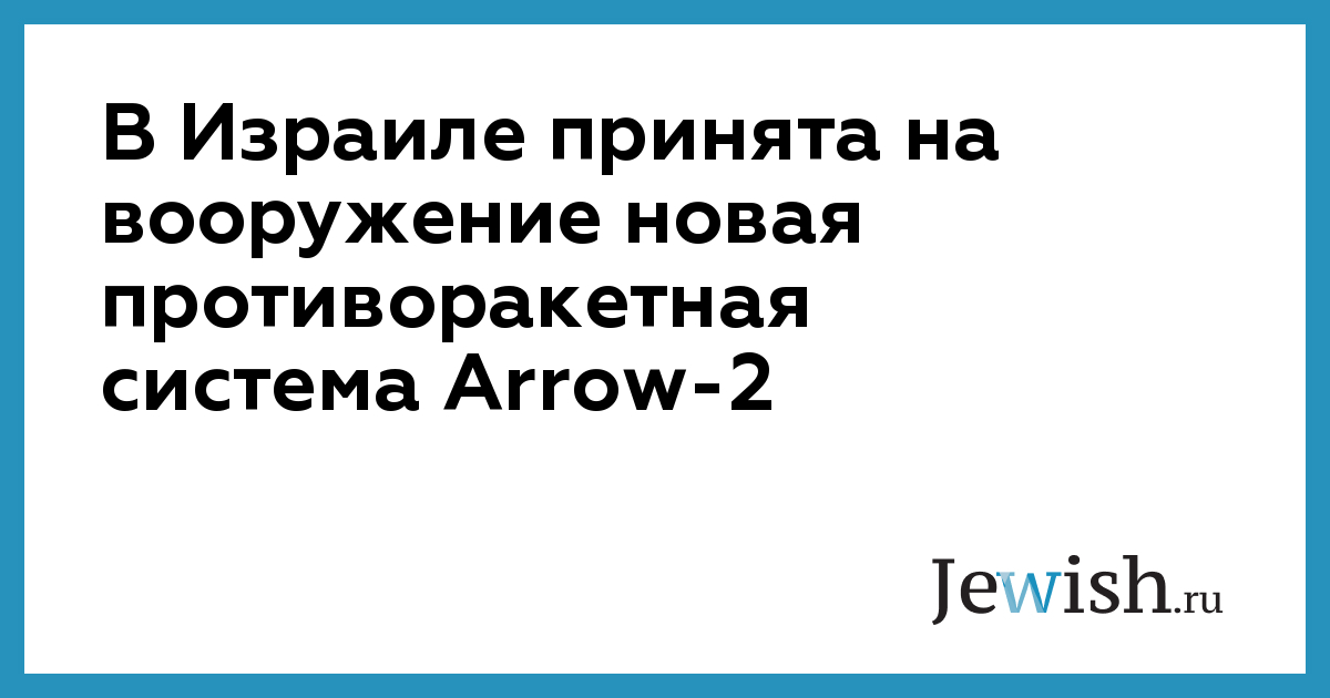В Израиле принята на вооружение новая противоракетная система Arrow-2