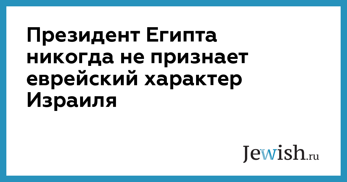 Президент Египта никогда не признает еврейский характер Израиля