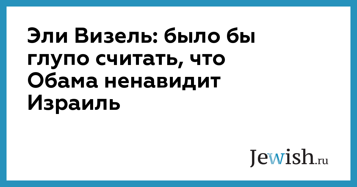 "Я могу сказать с полной уверенностью, что Обама не ненавидит Израиль, — сказал Визель в ответ на волну критики со стороны американских евреев на политику американского президента в отношении Израиля и поселений на Западном берегу. — Было бы глупо говорить, что он настроен антиизраильски".