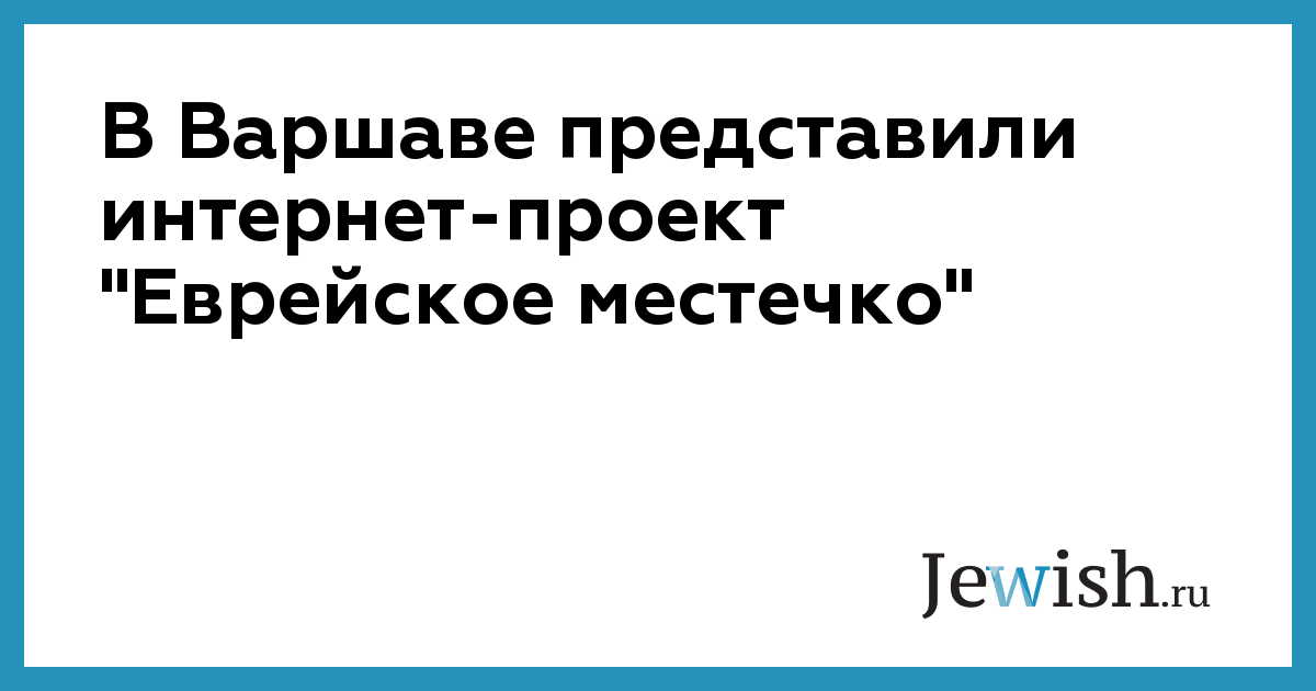 В Варшаве представили интернет-проект "Еврейское местечко"