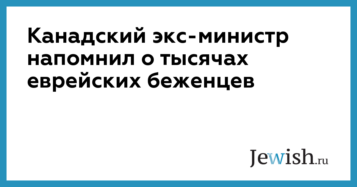 Канадский экс-министр напомнил о тысячах еврейских беженцев