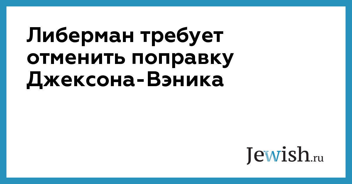 "Поправка Джексона-Вэника давно утратила свою актуальность. Сегодня она имеет в большей мере моральное, психологическое, нежели практическое значение, — заявил Либерман. — В течение ближайших месяцев мы попытаемся форсировать вопрос об отмене этой поправки для Азербайджана, России, Казахстана и других стран".