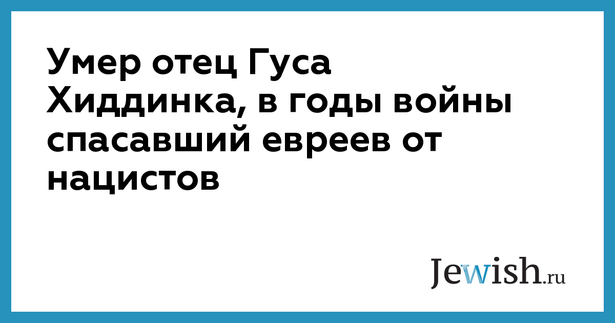 Умер отец Гуса Хиддинка, в годы войны спасавший евреев от нацистов