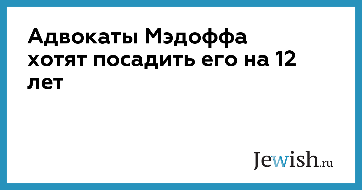 Адвокаты американского инвестора еврейского происхождения Бернарда Мэдоффа, которому грозит заключение на срок до 150 лет за создание крупнейшей в истории США финансовой пирамиды, попросили для своего клиента 12 лет тюрьмы. Об этом говорится в письме адвоката финансиста Ира Ли Соркина.
