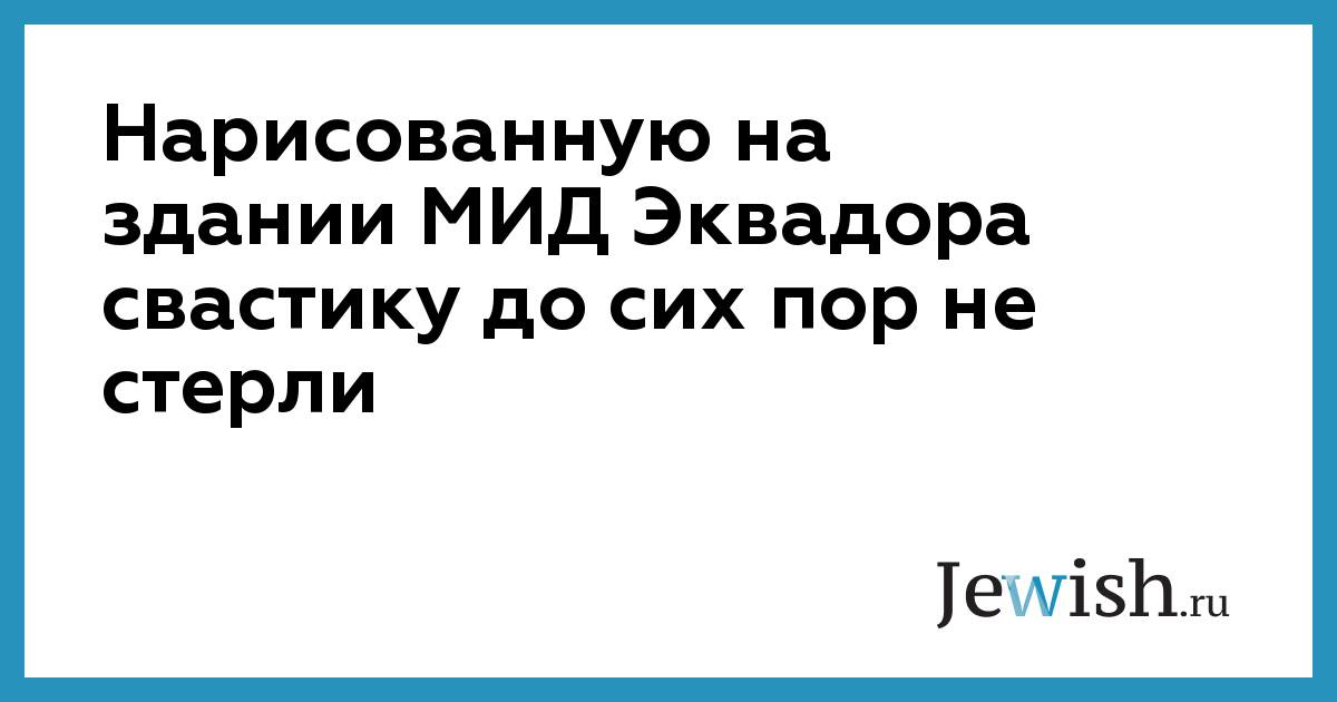Антисемитские граффити, появившиеся на здании Министерства иностранных дел Эквадора более двух недель назад, до сих пор не вычищены, несмотря на обращения израильского посольства. Неизвестные вандалы нарисовали на стене эквадорского МИДа большую звезду Давида, приравненную к нацистской свастике, и рядом надпись "Израильский геноцид".