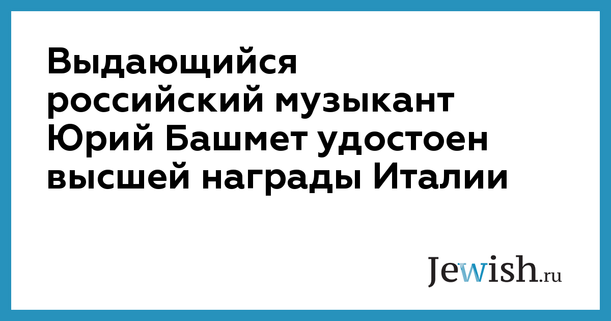 Выдающийся российский музыкант Юрий Башмет удостоен высшей награды Италии