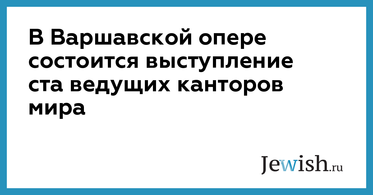 Впервые после окончания Второй мировой войны в Варшаве выступят 100 еврейских канторов со всего мира. Канторы, поющие во время еврейских религиозных служб, дадут представление в Варшавской национальной опере.