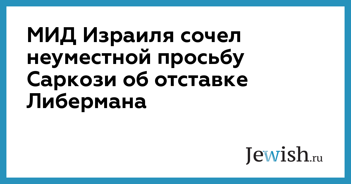 Высокопоставленный чиновник израильского МИДа назвал высказывания президента Франции Саркози в отношении министра иностранных дел Либермана неуместными и недопустимыми. Он подчеркнул, что заявления президента Франции являются грубым вмешательством во внутренние дела Израиля.