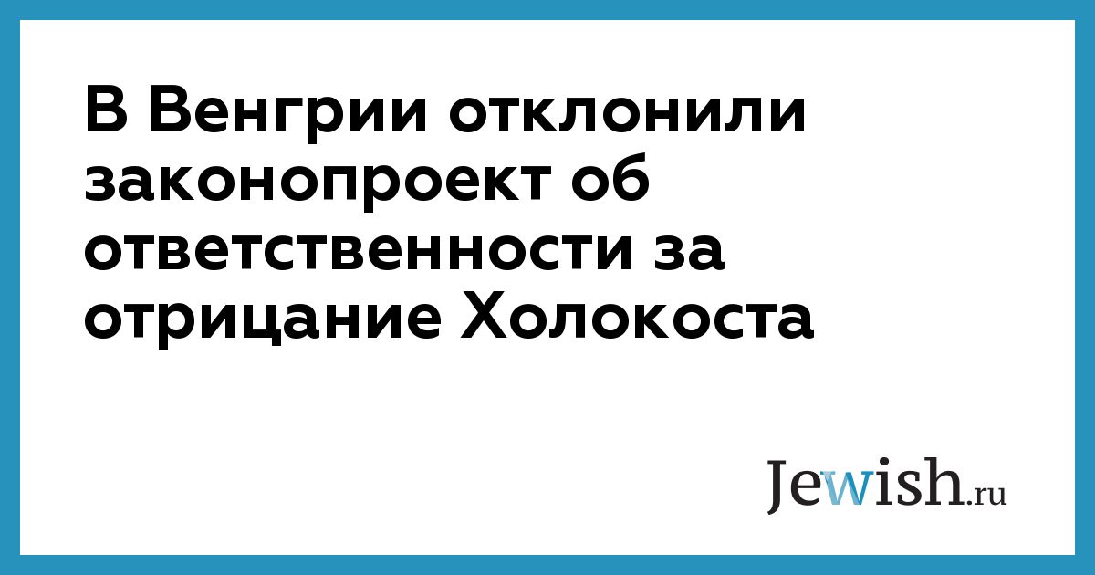 Венгерские парламентарии отклонили законопроект, предусматривающий уголовное преследование за отрицание Холокоста, сообщает JTA. Предложенный правящей социалистической партией закон не получил поддержки со стороны некоторых членов коалиции, готовых к диалогу с националистической оппозицией.