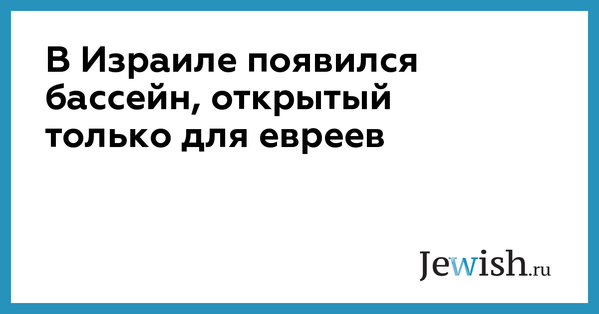 В Израиле появился бассейн, открытый только для евреев