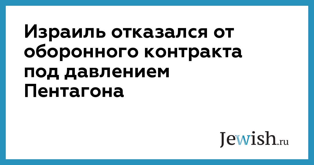 Израиль отказался от оборонного контракта под давлением Пентагона