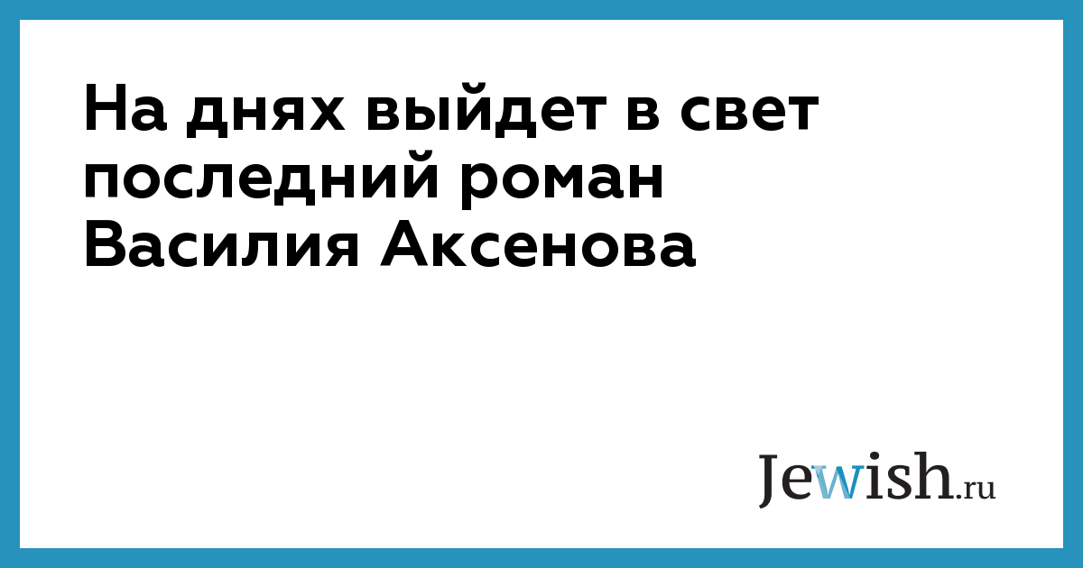 В ближайшие дни в России выйдет последний роман Василия Аксенова, скончавшегося в этот понедельник, сообщил литагент писателя Виктор Вогман, который, впрочем, не уточнил конкретную дату выхода книги.