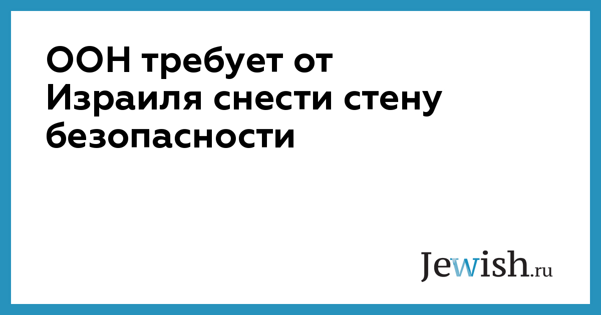 ООН потребовала от Израиля подчиниться решению международного трибунала в Гааге, требующего сноса разделительной стены безопасности между Израилем и палестинскими территориями. Офис ООН для координации гуманитарных мероприятий созвал специальную пресс-конференцию в Иерусалиме, посвященную пятилетию принятия решения суда в Гааге.