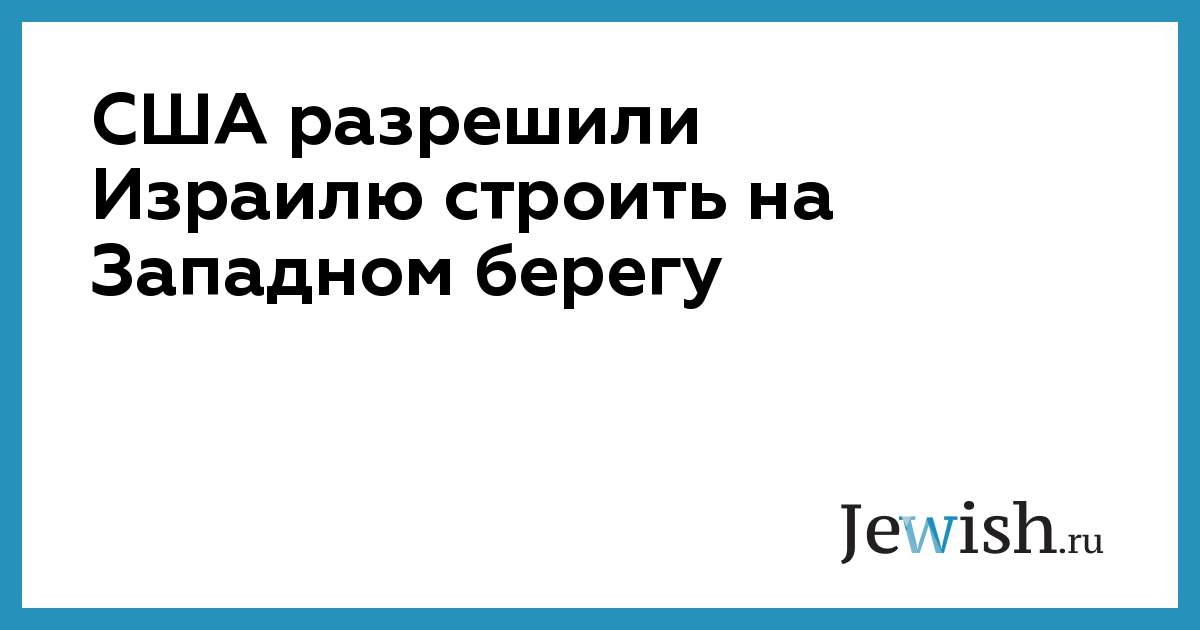 США разрешили Израилю строить на Западном берегу