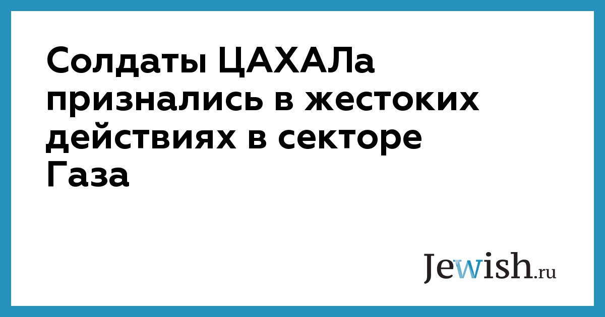 Солдаты ЦАХАЛа признались в жестоких действиях в секторе Газа