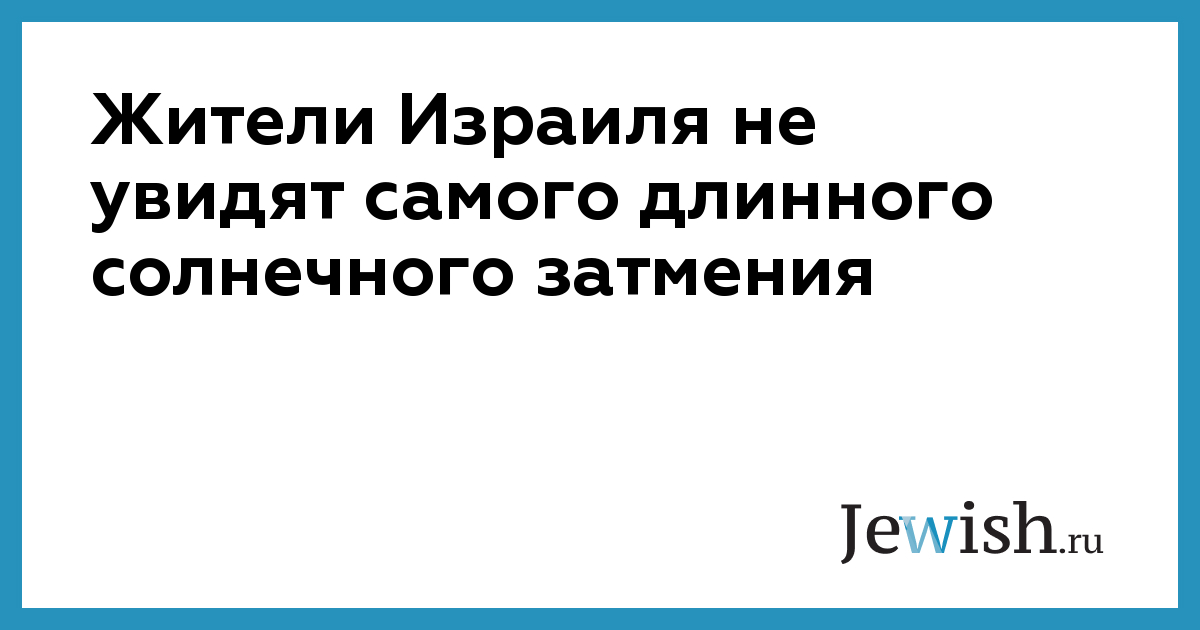 Жители Израиля не смогут увидеть солнечное затмение, поскольку в Израиле в этот период времени будет глубокая ночь.