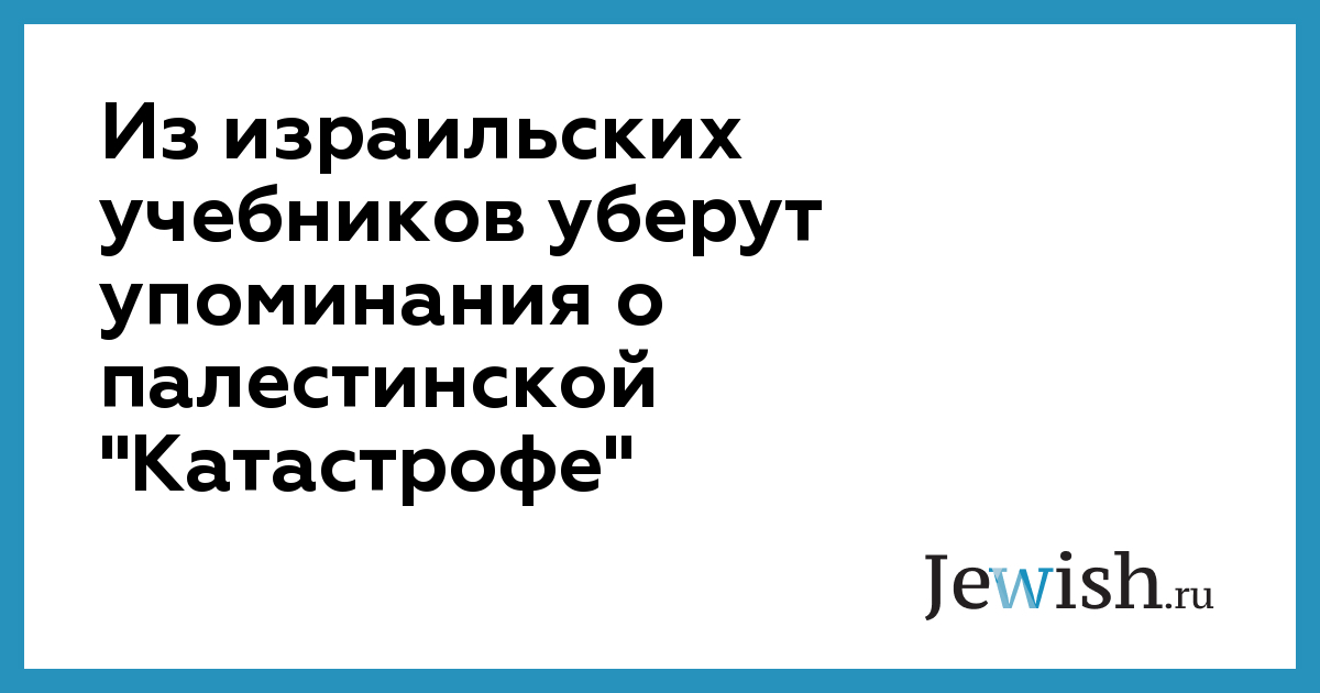 Все упоминания о палестинской "Катастрофе" будут вычеркнуты из израильских учебников для арабских школьников, заявил министр образования Израиля Гидеон Саар. В арабском мире термином "Катастрофа" ("аль-Накба") называют провозглашение израильского государства в 1948 году.