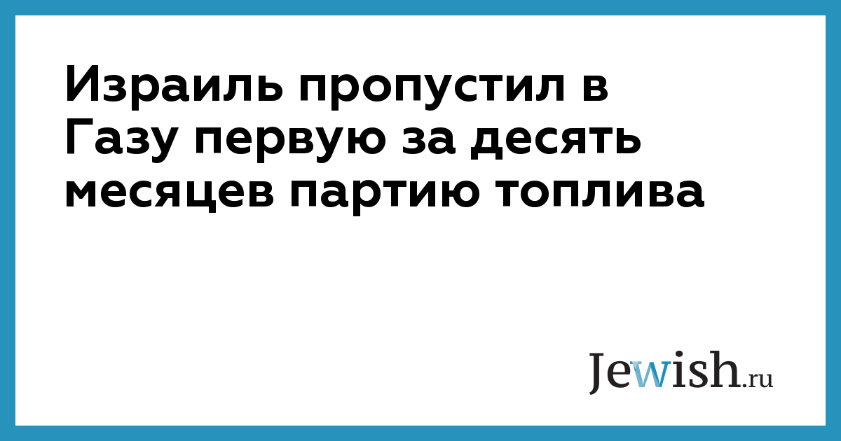 Израиль пропустил в Газу первую за десять месяцев партию топлива