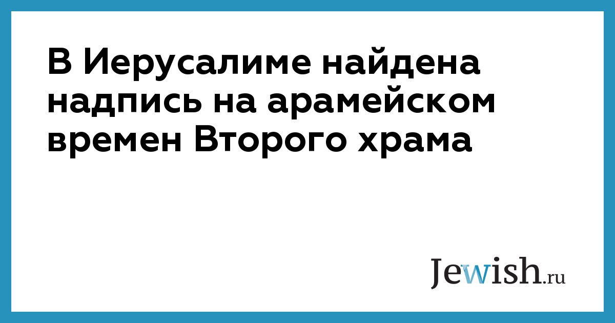 В Иерусалиме найдена надпись на арамейском времен Второго храма