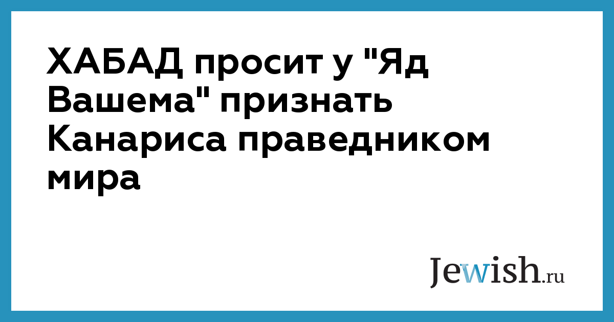 Представители еврейского религиозного течения ХАБАД подали официальное прошение в мемориальный центр Холокоста "Яд Вашем" с просьбой признать главу военной разведки и контрразведки нацисткой Германии адмирала Вильгельма Канариса праведником народов мира.
