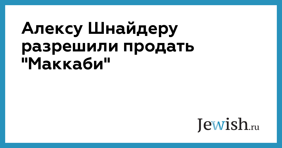 Алексу Шнайдеру разрешили продать "Маккаби"