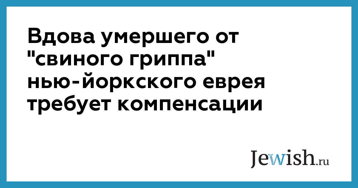 Вдова умершего от "свиного гриппа" нью-йоркского еврея требует компенсации