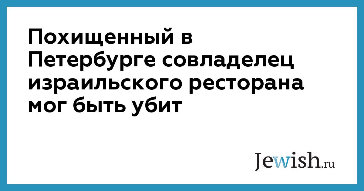 Похищенный в Петербурге совладелец израильского ресторана мог быть убит