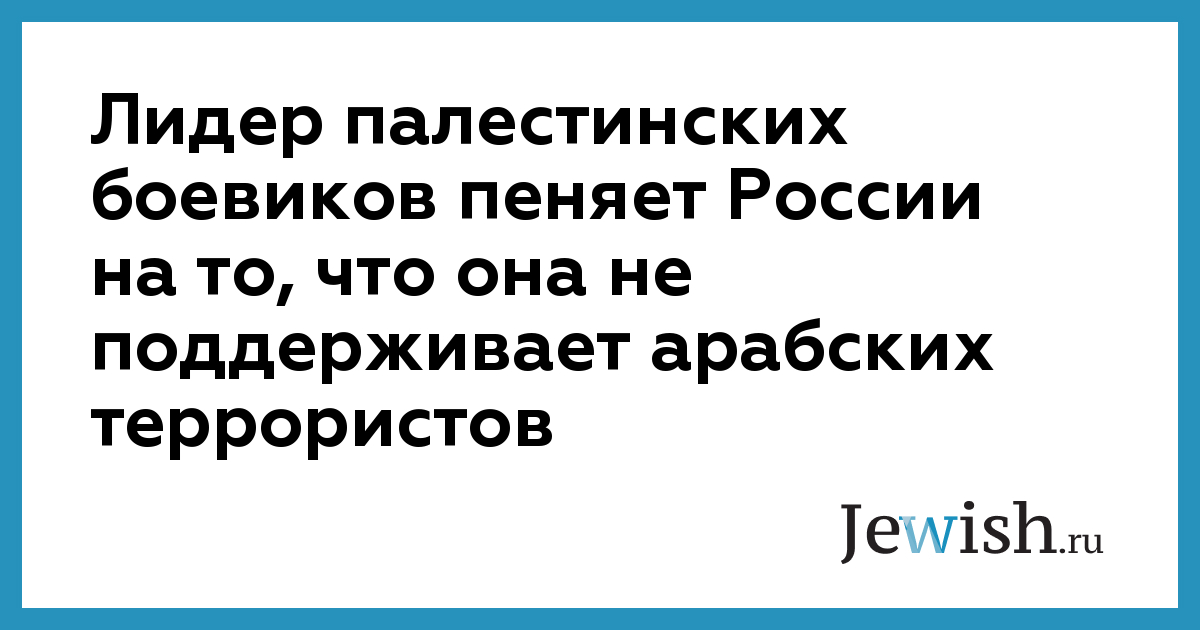Лидер палестинских боевиков пеняет России на то, что она не поддерживает арабских террористов