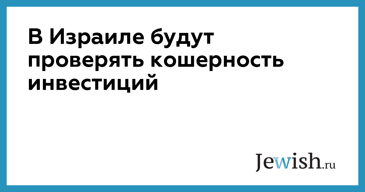 В Израиле будут проверять кошерность инвестиций