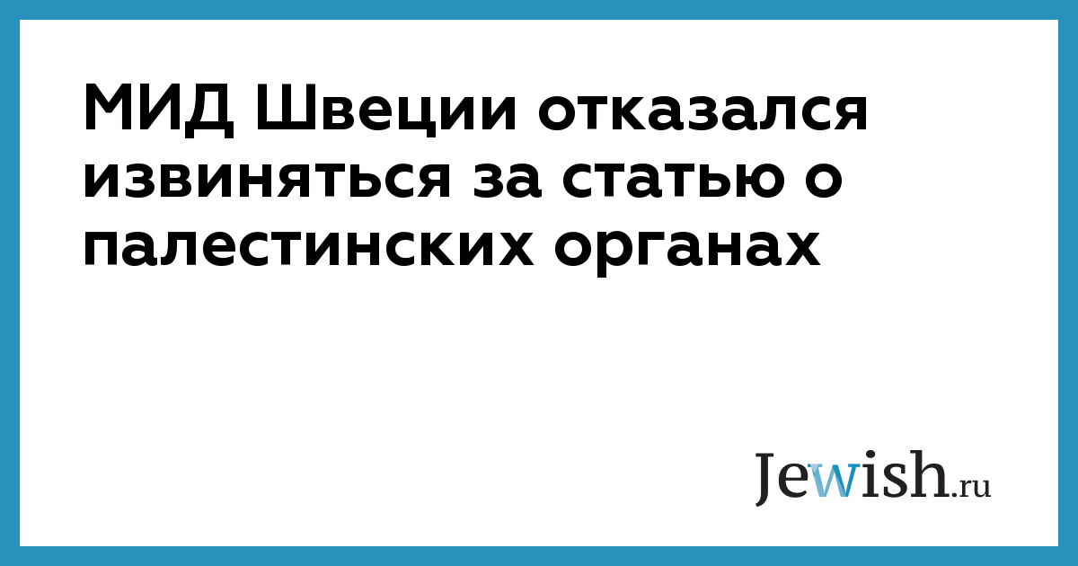 МИД Швеции отказался извиняться за статью о палестинских органах