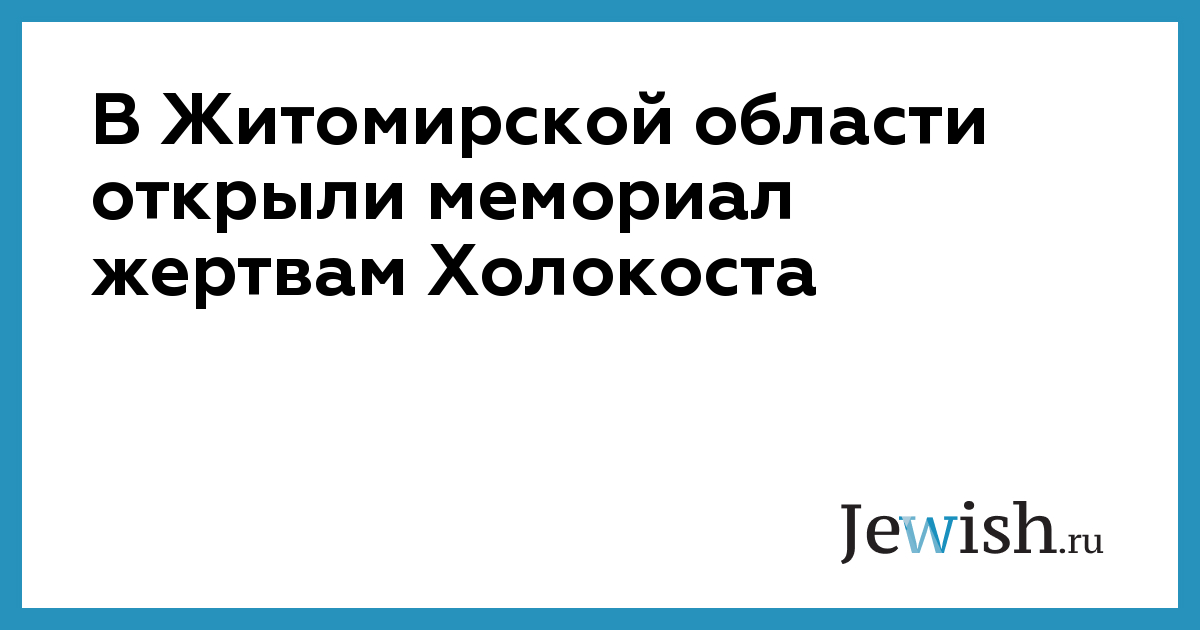 В Житомирской области открыли мемориал жертвам Холокоста