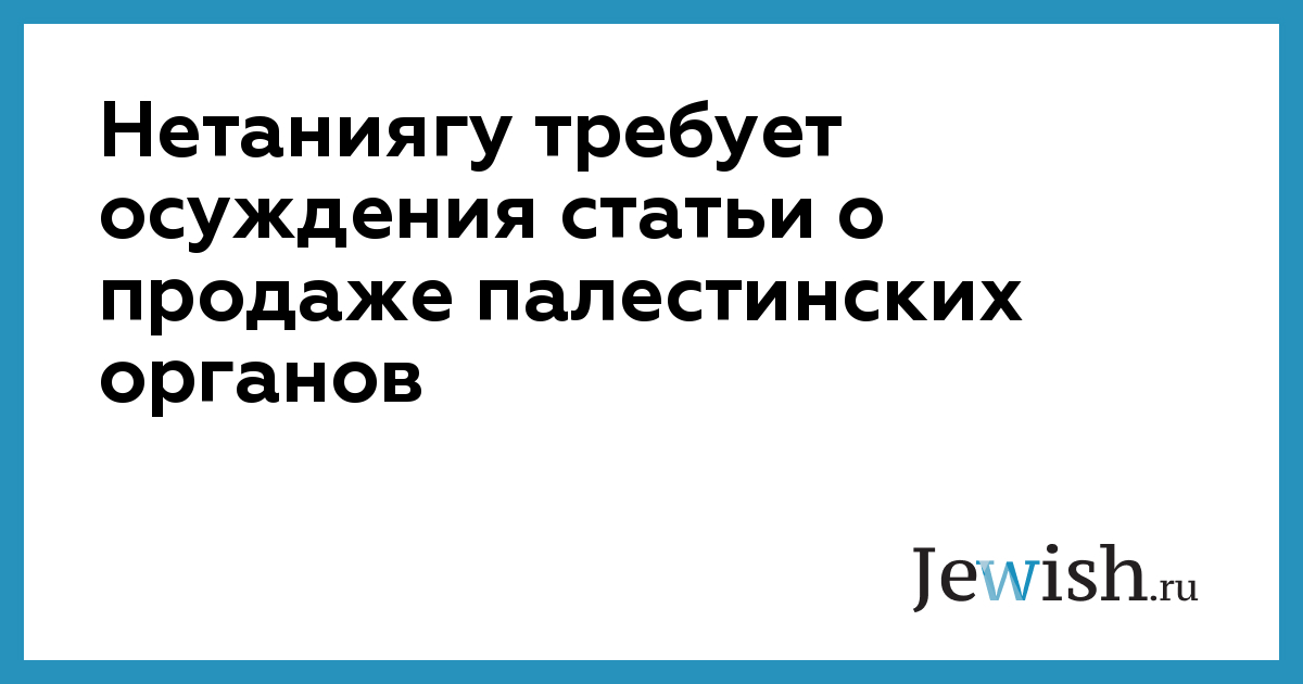 Нетаниягу требует осуждения статьи о продаже палестинских органов