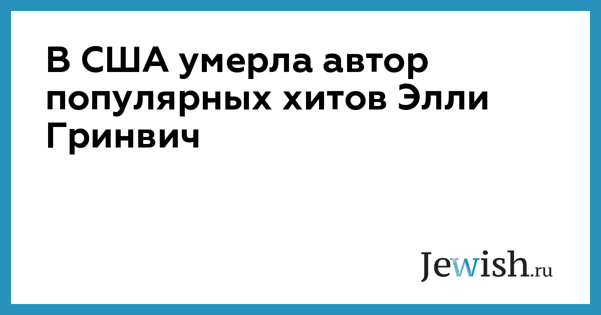 В США в возрасте 68 лет скончалась Элли Гринвич - автор известных песен, часть из которых были написаны ею в соавторстве со знаменитым музыкальным продюсером Филом Спектором, сообщает Associated Press. По словам племянницы Гринвич Джессики Уинер, она умерла в среду, 26 августа, в нью-йоркской больнице, куда была госпитализирована с диагнозом пневмония. Причиной смерти стал инфаркт.