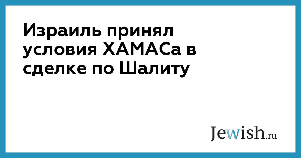 Израиль принял условия ХАМАСа в сделке по Шалиту