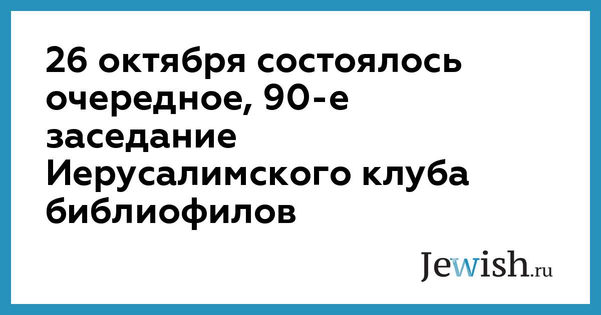26 октября состоялось очередное, 90-е заседание Иерусалимского клуба библиофилов
