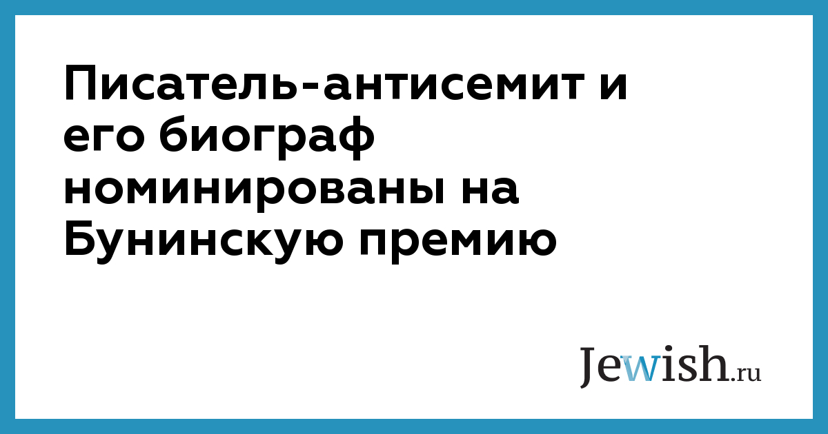 Писатель-антисемит и его биограф номинированы на Бунинскую премию
