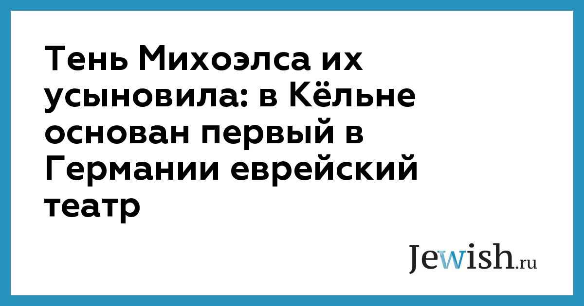 Тень Михоэлса их усыновила: в Кёльне основан первый в Германии еврейский театр