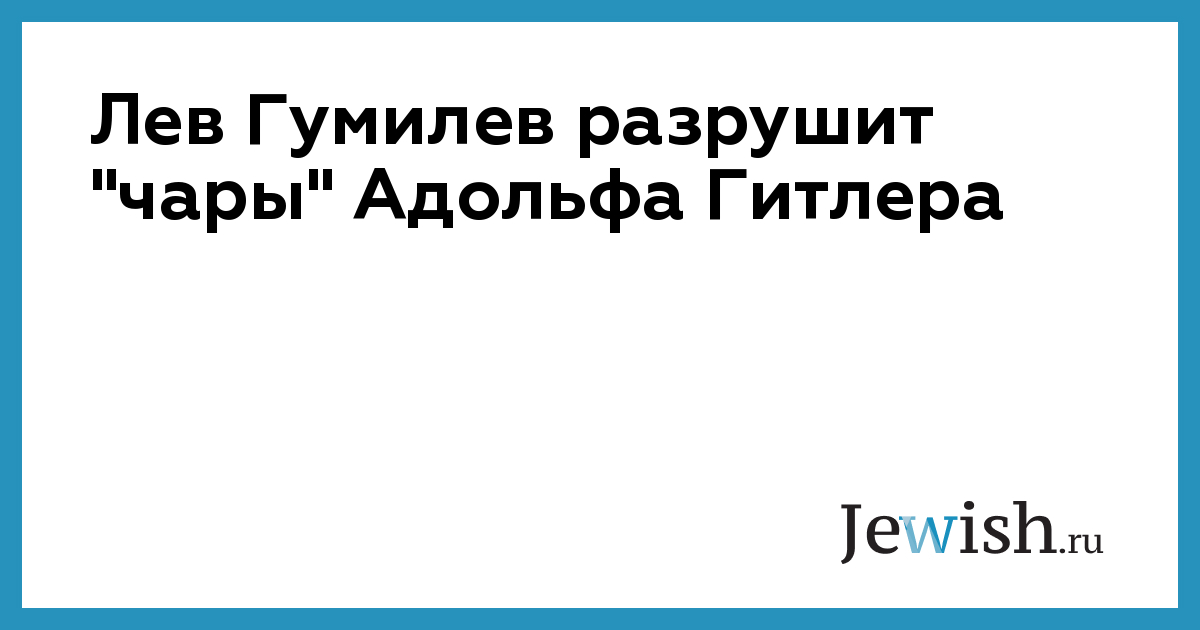 Лев Гумилев разрушит "чары" Адольфа Гитлера