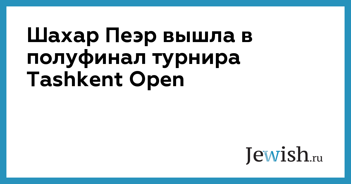 Шахар Пеэр вышла в полуфинал проходящего в столице Узбекистана теннисного турнира Tashkent Open (призовой фонд 220 тысяч долларов). Сильнейшая теннисистка Израиля в четвертьфинале обыграла россиянку Александру Панову со счетом 6:4, 6:4, сообщает NEWSru.co.il.
