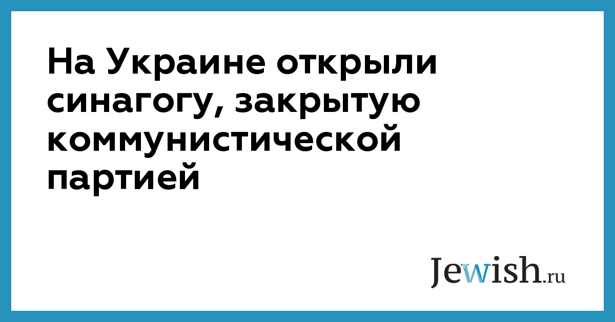 На Украине открыли синагогу, закрытую коммунистической партией