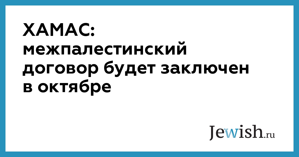 Вчера генсек ХАМАСа Халед Машаль заявил, что межпалестинский договор будет заключен уже в октябре. После встречи в Каире с главой египетских спецслужб Омаром Сулейманом Машаль объявил, что Египет созовет палестинский национальный съезд в Каире для подписания договора о внутрипалестинском примирении, сообщает Zman.com со ссылкой на германское агентство DPA.