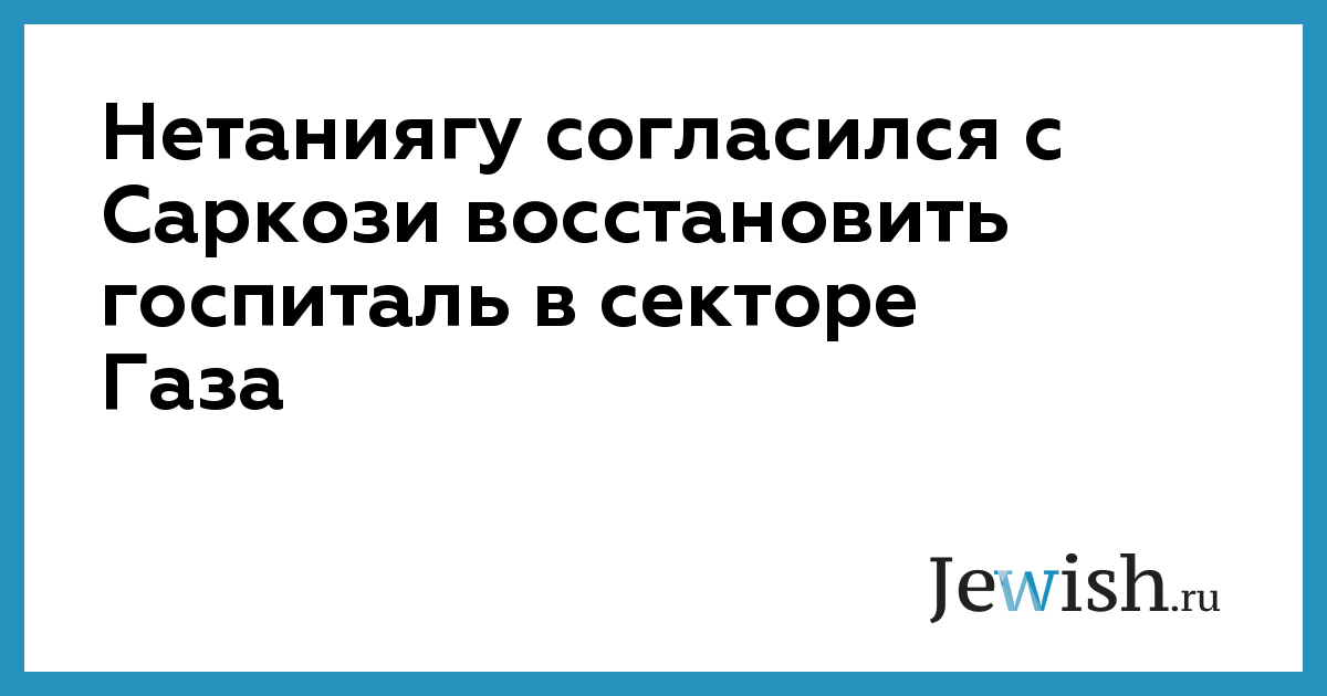 Нетаниягу согласился с Саркози восстановить госпиталь в секторе Газа