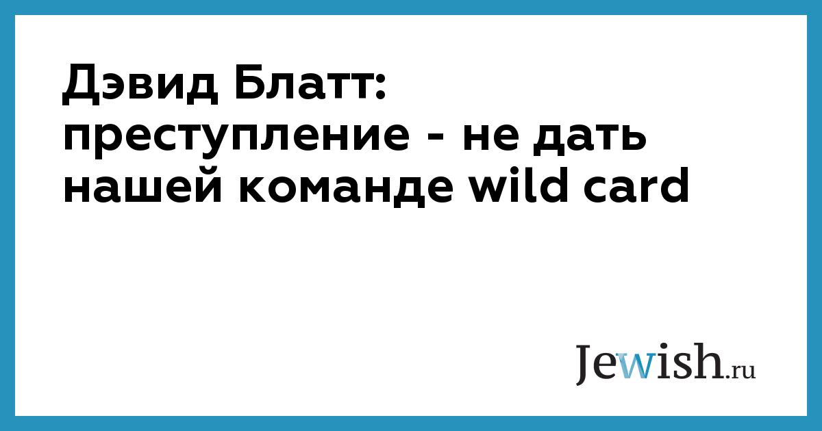 Дэвид Блатт: преступление — не дать нашей команде wild card